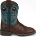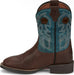 Justin Kids Unisex Bowline Junior Walnut/Blue Leather Cowboy Boots