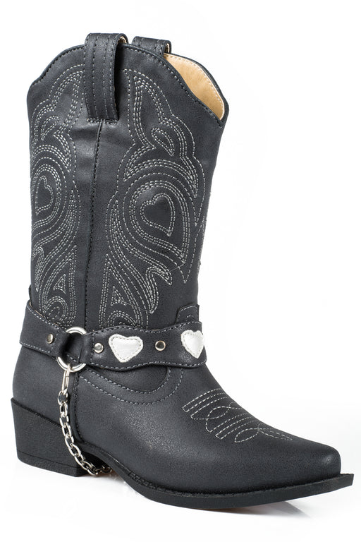 Roper Dale Kids Black Faux Leather Girls Harness Hearts Boots