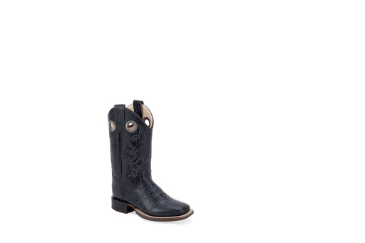Old West Kids Unisex Broad Square Toe Black Leather Cowboy Boots