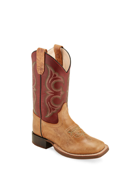 Old West Red/Tan Children Boys Leather Cowboy Boots