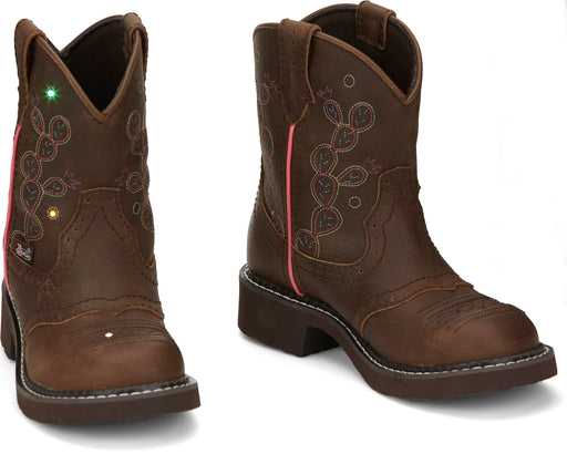 Justin Gypsy Round Brown Glitzi Kids Leather Cowboy Boots