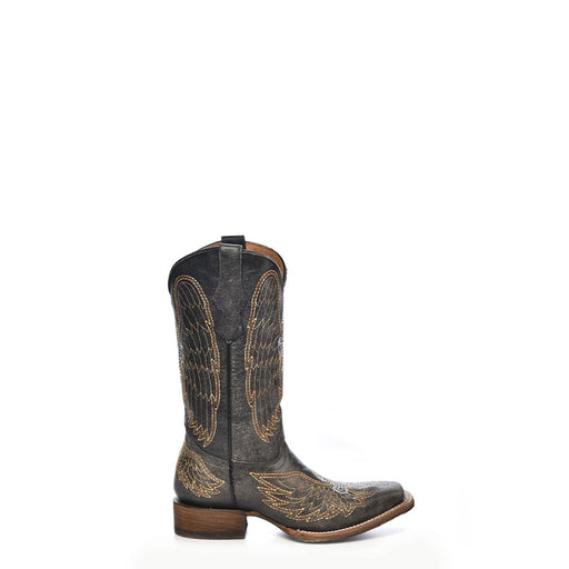 Corral Boots Kids Girl Leather Wing & Cross Black Square Toe Cowgirl