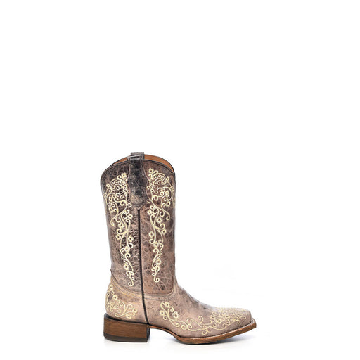 Corral Teen Embroidery Brown Cowhide Leather Cowgirl Boots