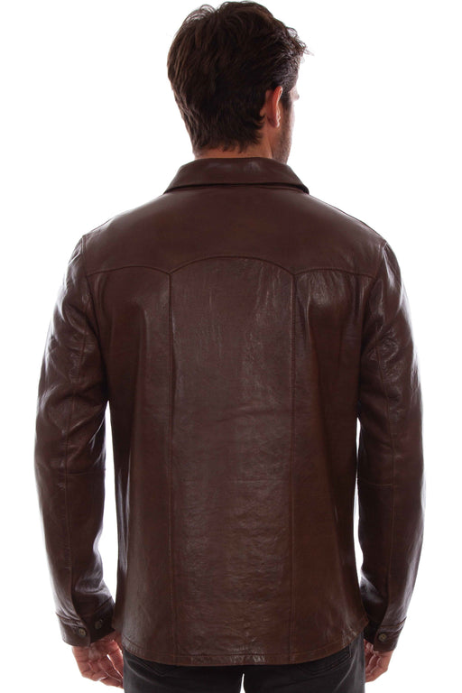 Scully Mens Contemporary Western Shirt Chocolate Leather Leather Jacket