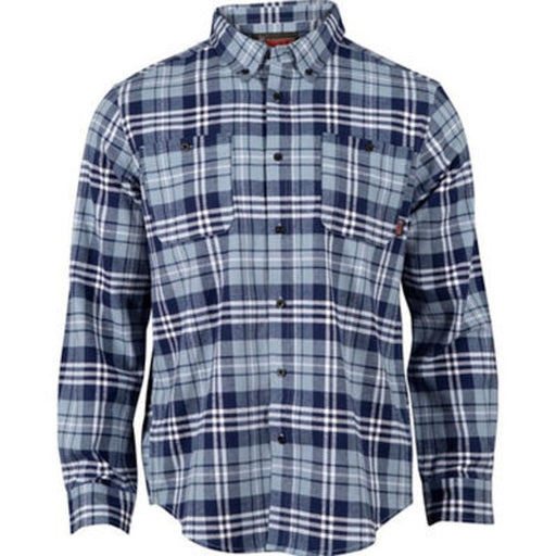 Rocky Mens Worksmart Button Down Navy Plaid 100% Cotton L/S Shirt