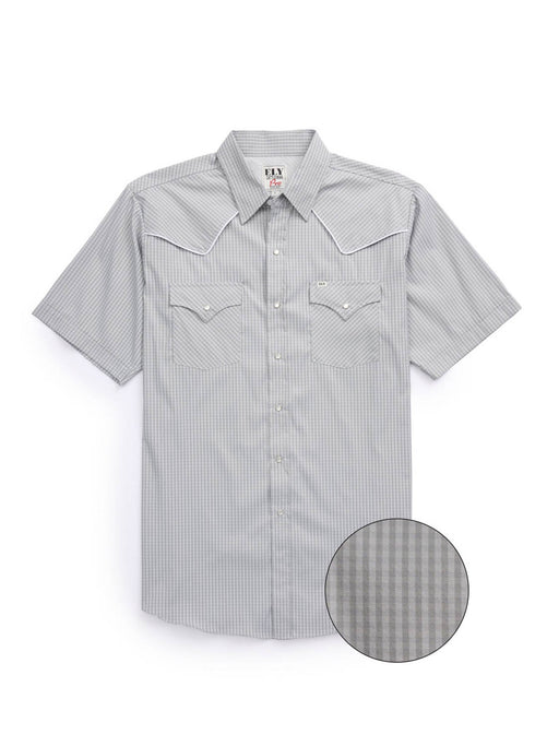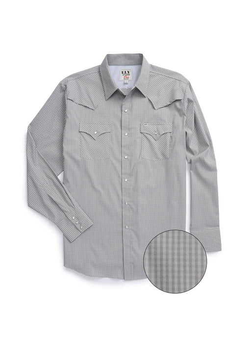Ely and Walker Mens Check Vented Stretch Western Gray Poly/Nylon L/S Shirt
