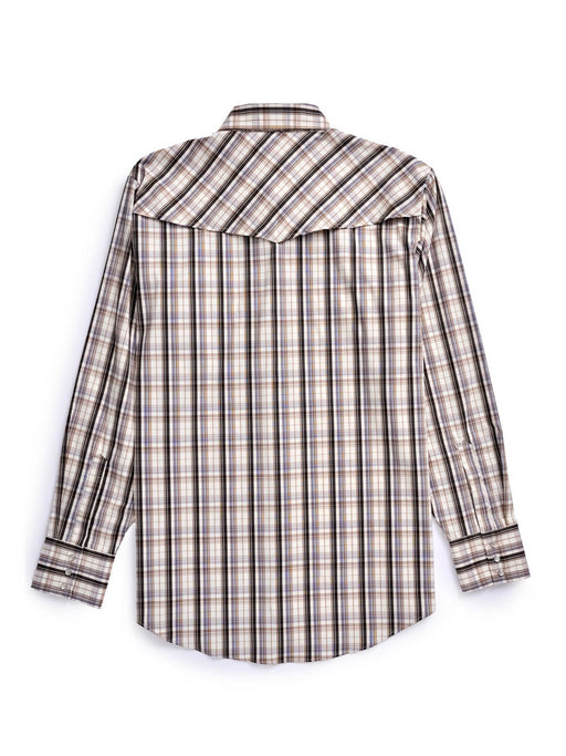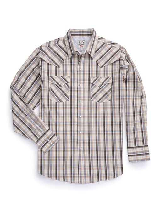 Ely and Walker Mens Plaid Vented Stretch Western Tan Poly/Nylon L/S Shirt