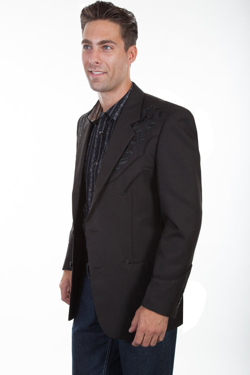 Scully Mens Black Polyester Western Floral Blazer