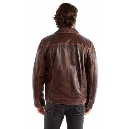 Scully Mens Washed Jean Cognac Leather Leather Jacket