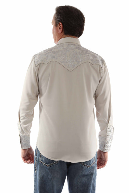 Scully Mens Floral Tooled Light Grey Poly/Rayon L/S Shirt