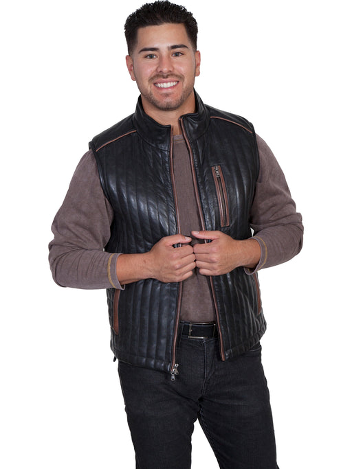 Scully Leather Mens Western Lambskin Lapel Vest Black Soft Touch