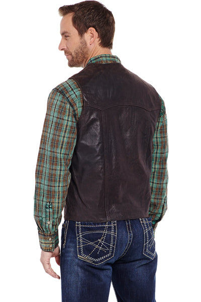 Cripple Creek Mens Antique Chocolate Leather Western Snap Front Vest