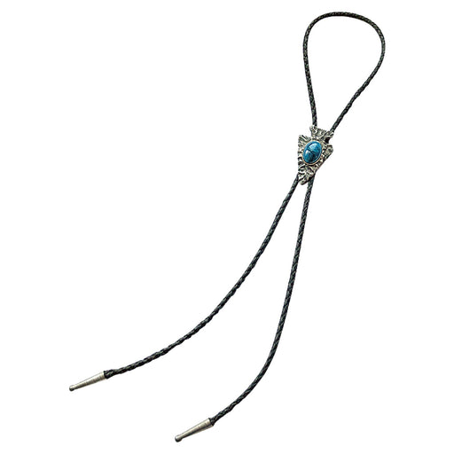 Rockmount Turquoise Faux Leather Silver Arrowhead Inlay Bolo Tie OS