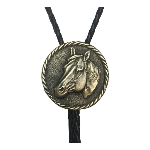 Rockmount Brass Faux Leather Horsehead Western Bolo Tie OS
