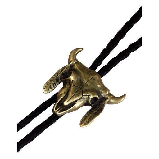 Rockmount Brass Faux Leather Steer Skull with Feathers Bolo Tie OS