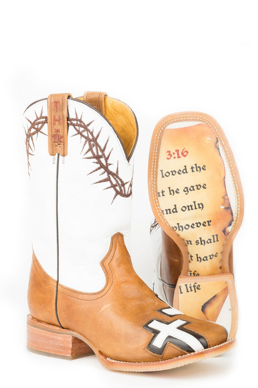 Tin Haul Mens Brown/White Leather Between Two Thieves Cowboy Boots