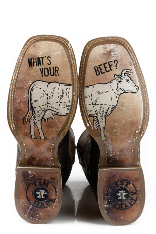 Tin Haul Mens Brown/Black Leather Whats Your Angle Cowboy Boots