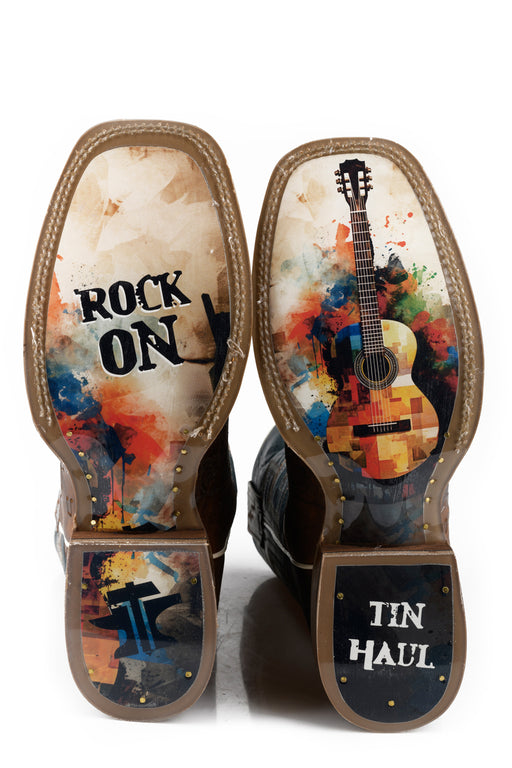 Tin Haul Mens Guitar Man Rock On Brown Leather Cowboy Boots