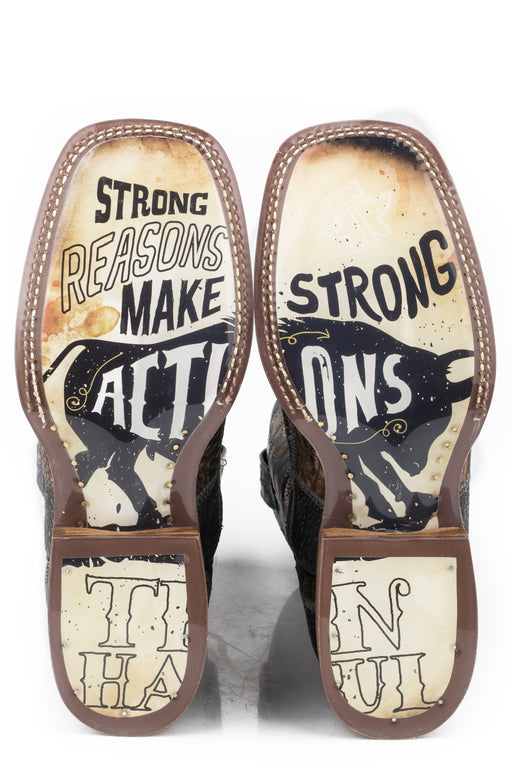 Tin Haul Mens Bricks And Stones Black/Brown Leather Ride Em Cowboy Boots
