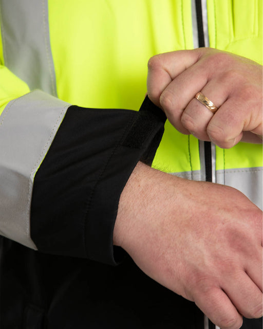 Berne Mens Hi Vis Class 3 Hooded Yellow Fleece Softshell Jacket