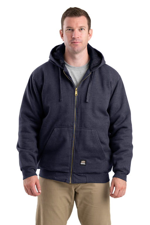 Berne Mens Navy Cotton Blend Highland Insulated Zip Hooded Sweatshirt