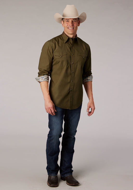 Roper Mens 2044 Solid Poplin Cocoa 100% Cotton L/S Shirt