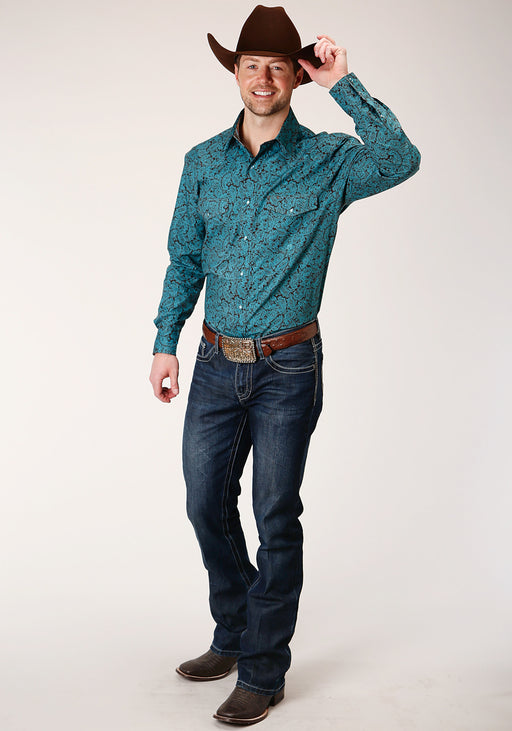 Roper Mens Turquoise 100% Cotton Agave Paisley L/S Shirt