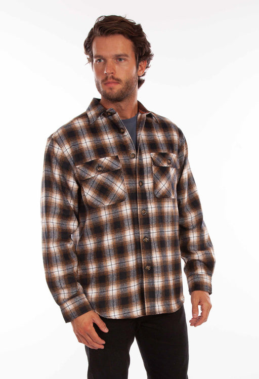 Scully Mens Brown/Black Wool Blend Plaid L/S Shirt