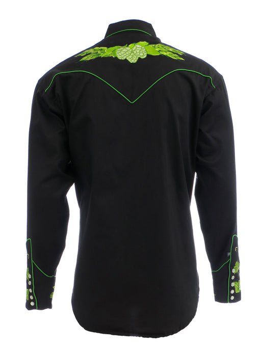 Rockmount Mens Black 100% Cotton L/S Western Shirt Vintage Hops Embroidered