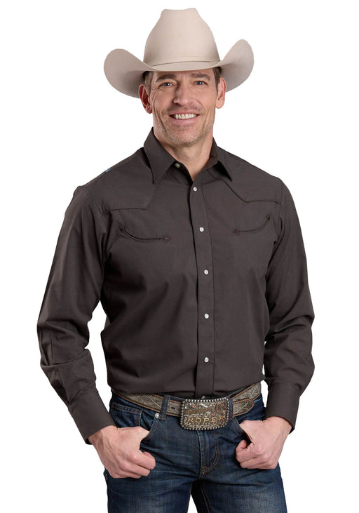 Roper Mens 2592 Solid Poplin Brown 100% Cotton Black Fill L/S Shirt