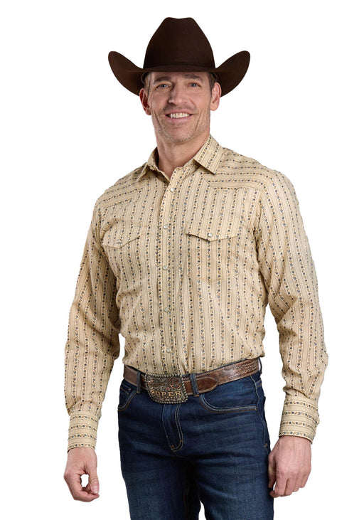 Roper Mens 2661 Wallpaper Floral Tan Cotton Blend L/S Shirt