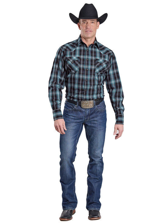 Roper Mens 2625 Scenic Border Black/White 100% Cotton L/S Shirt