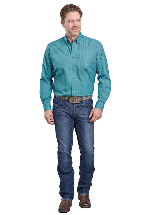 Roper Mens 2606 Diamond Dobby Blue/Navy 100% Cotton L/S Shirt