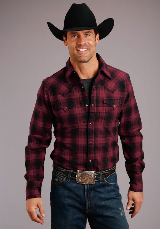 Stetson Mens Black/Red 100% Cotton Check Mate L/S Shirt