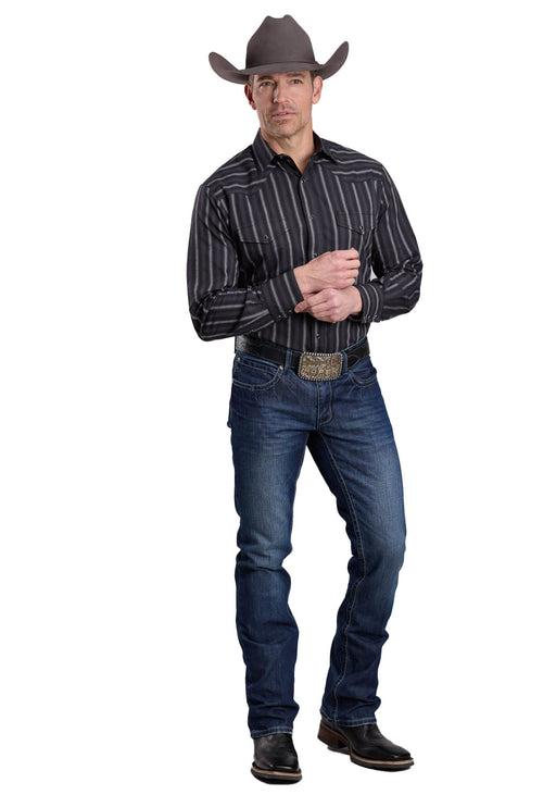 Roper Mens 2665 Stripe Black/Grey Cotton Blend L/S Shirt