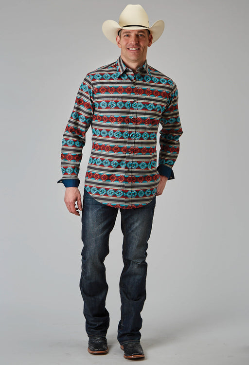 Roper Mens 1898 Aztec Stripe Red 100% Cotton L/S Shirt