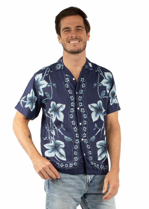 Scully Mens Hawaiian Orchid Print Navy 100% Viscose S/S Shirt