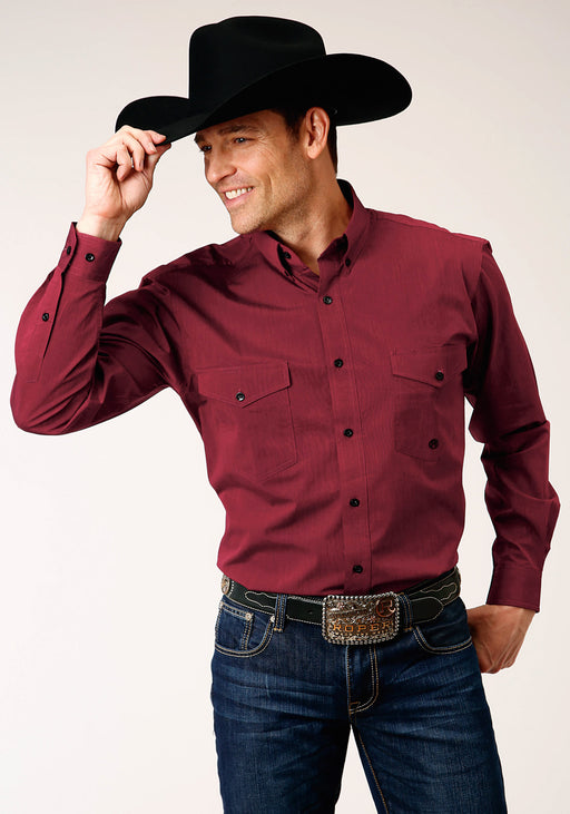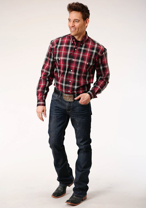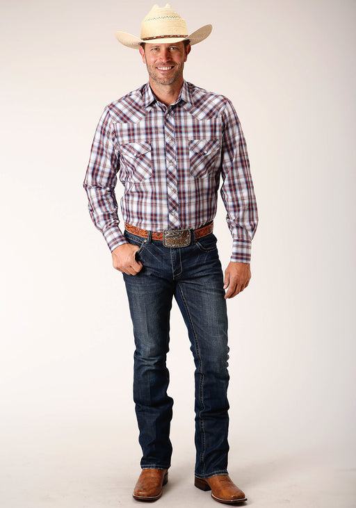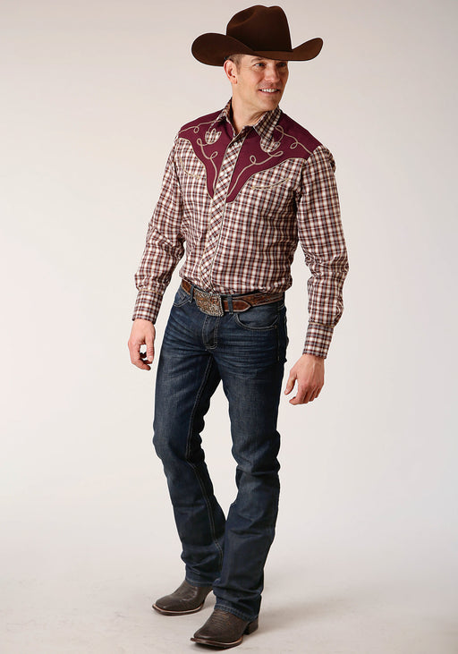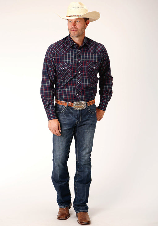 Roper Mens 55/45 Plaids Wine/Navy Cotton Blend L/S Shirt