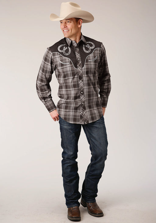 Roper Mens Fancy Applique Chocolate/Cream Cotton Blend L/S Shirt