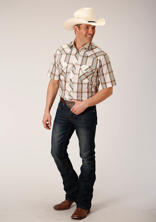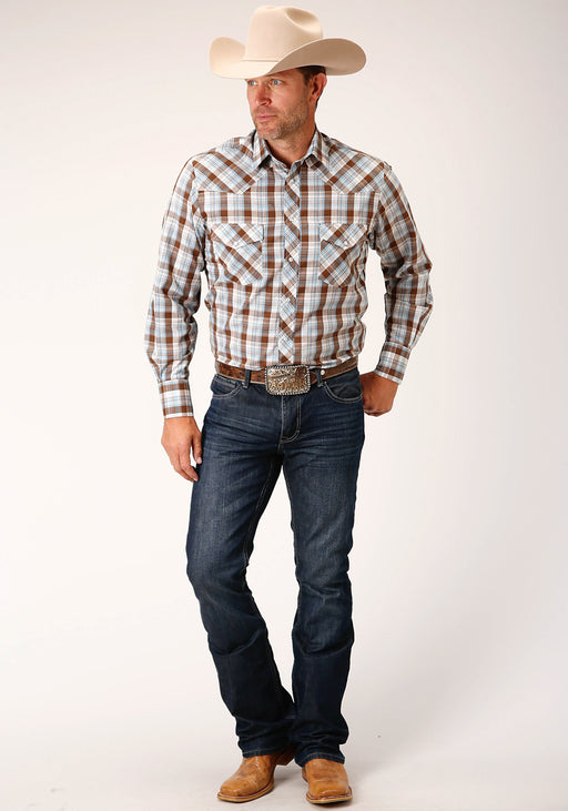 Roper Mens 55/45 Plaids Brown Cotton Blend L/S Shirt
