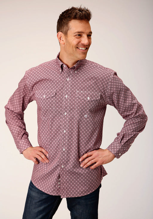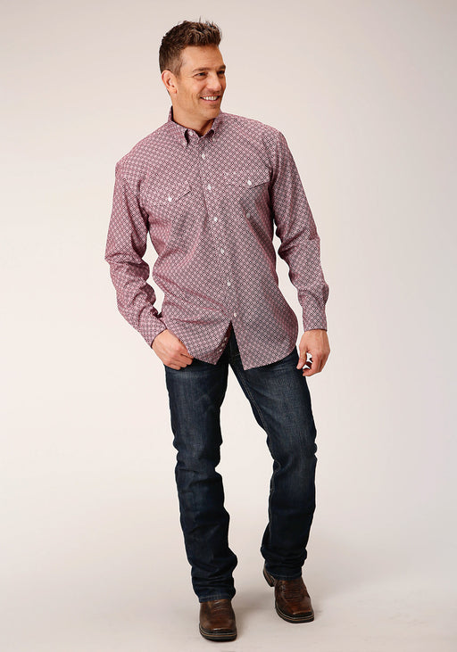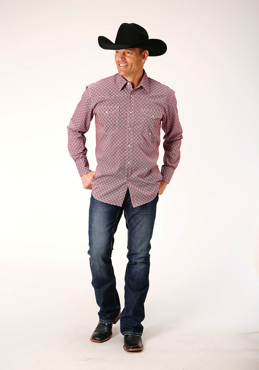 Roper Mens Diamond Foulard Red 100% Cotton L/S Shirt