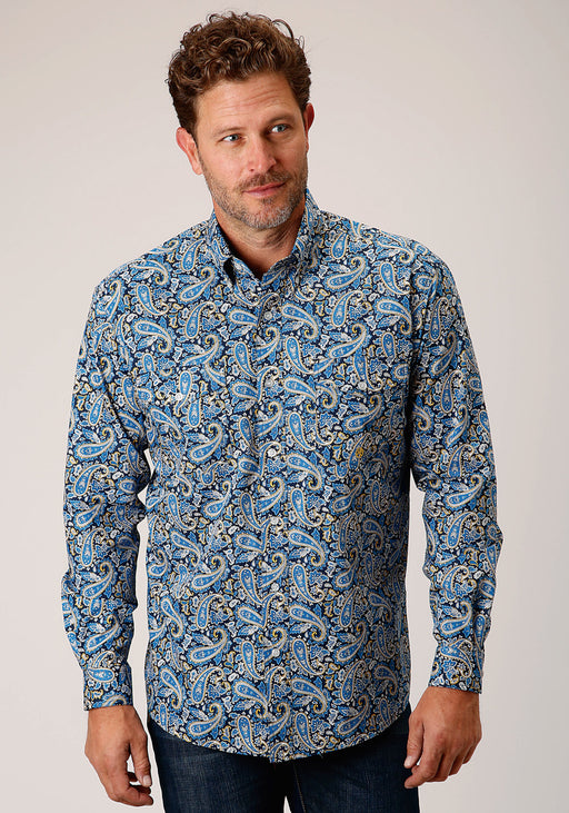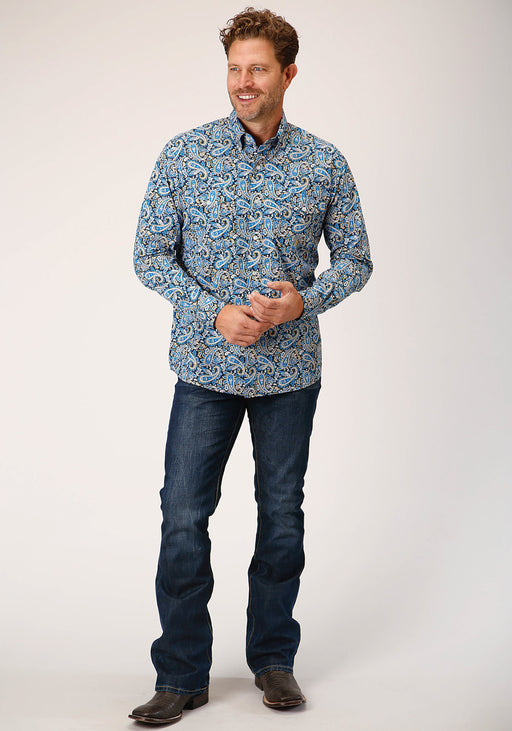 Roper Mens Amarillo Paisley Blue 100% Cotton L/S Shirt