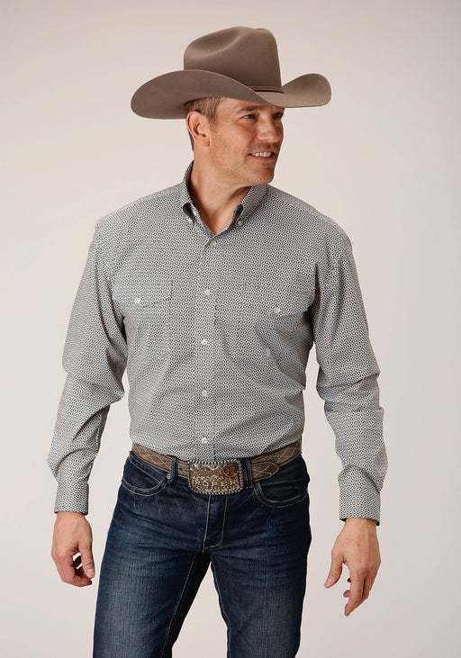 Roper Mens 55/45 Windowpane Navy/White Cotton Blend L/S Shirt