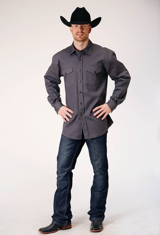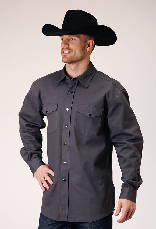 Roper Mens Brush Twill Charcoal 100% Cotton L/S Shirt
