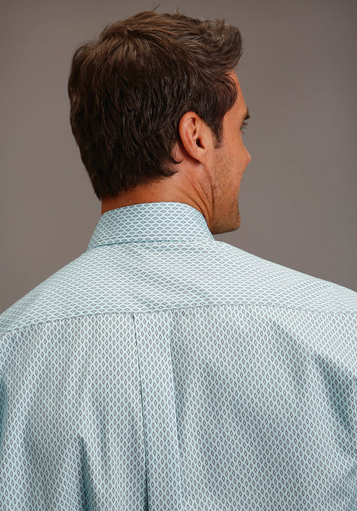 Stetson Mens Silver Diamond Neat Blue 100% Cotton L/S Shirt