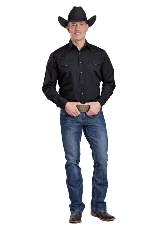 Roper Mens 2682 Solid Poplin Black 100% Cotton L/S Shirt