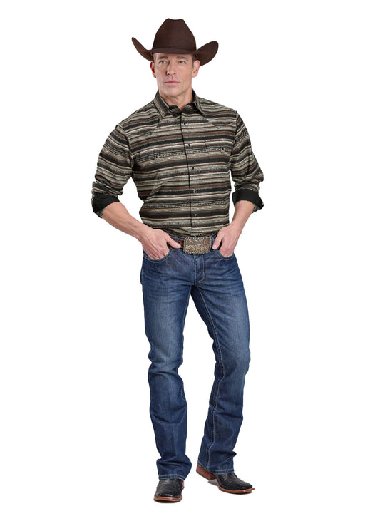Roper Mens 2607 Distressed Aztec Brown/Black 100% Cotton L/S Shirt