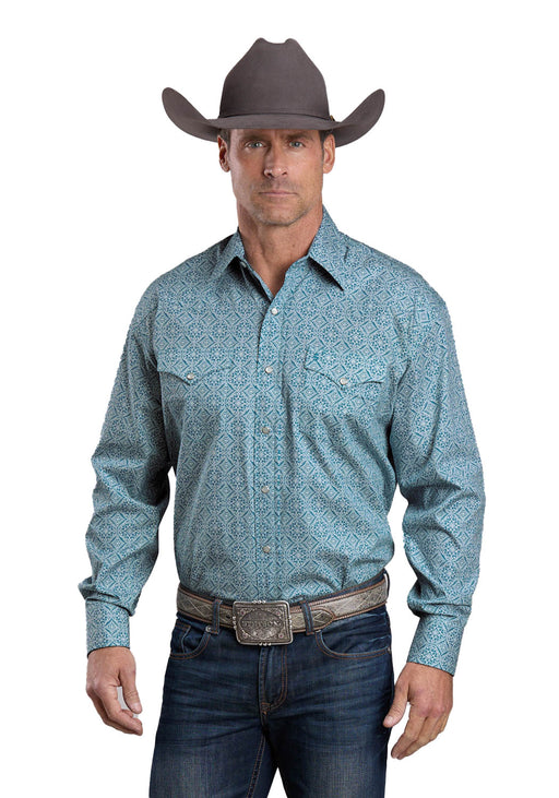 Stetson Mens 2573 Tile Medallion Teal 100% Cotton L/S Shirt