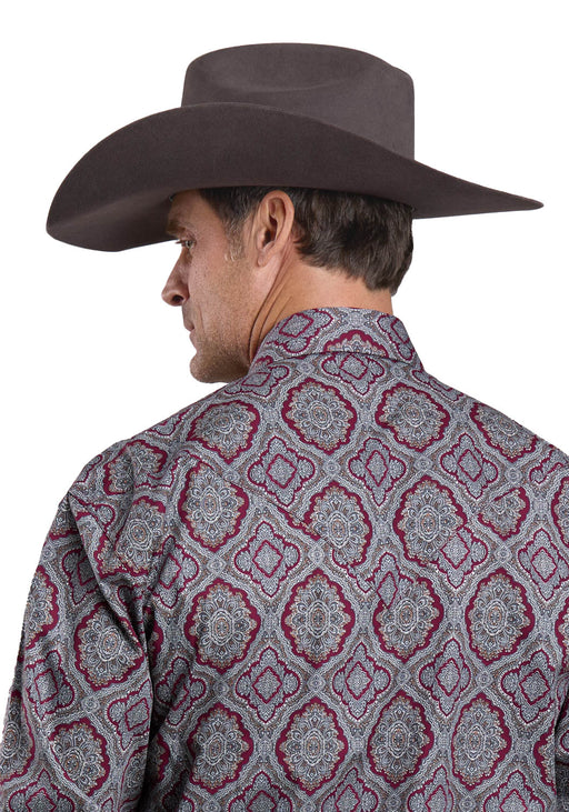 Stetson Mens 2572 Medallion Paisley Wine 100% Cotton L/S Shirt