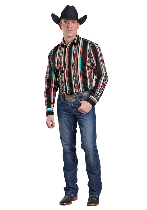 Roper Mens 2628 Serape Stripe Black 100% Cotton L/S Shirt